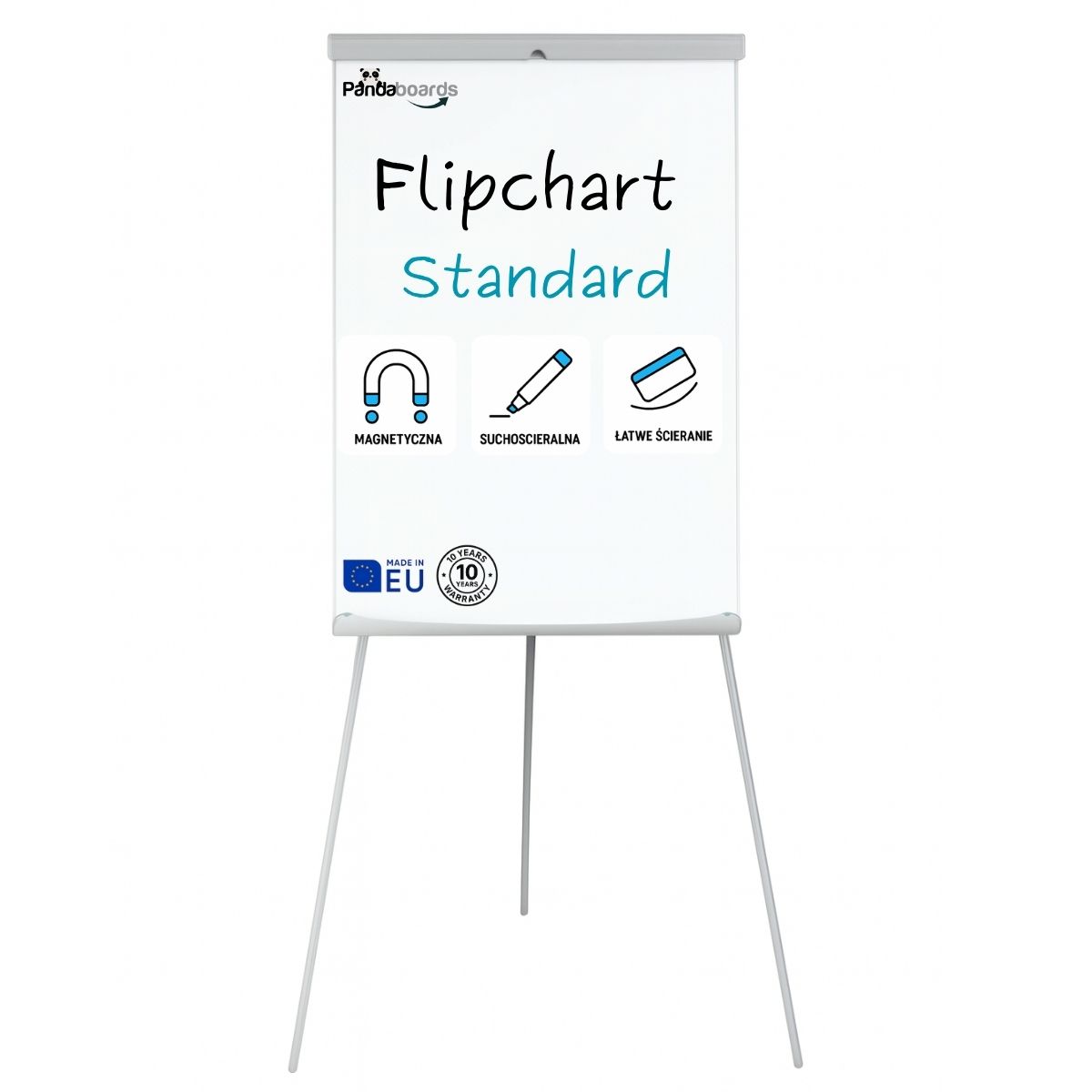 Flipchart Magnetyczny Suchościeralny na trójnogu FT1 to wysokiej klasy narzędzie do prezentacji, szkoleń, burz mózgów i planowania — niezastąpiony zarówno w biurze, sali konferencyjnej, jak i sali szkoleniowej. Stabilna konstrukcja na trójnogu, elegancka rama aluminiowa i lakierowana powierzchnia suchościeralna z funkcją magnetyczną łączą w sobie trwałość, funkcjonalność i komfort użytkowania.