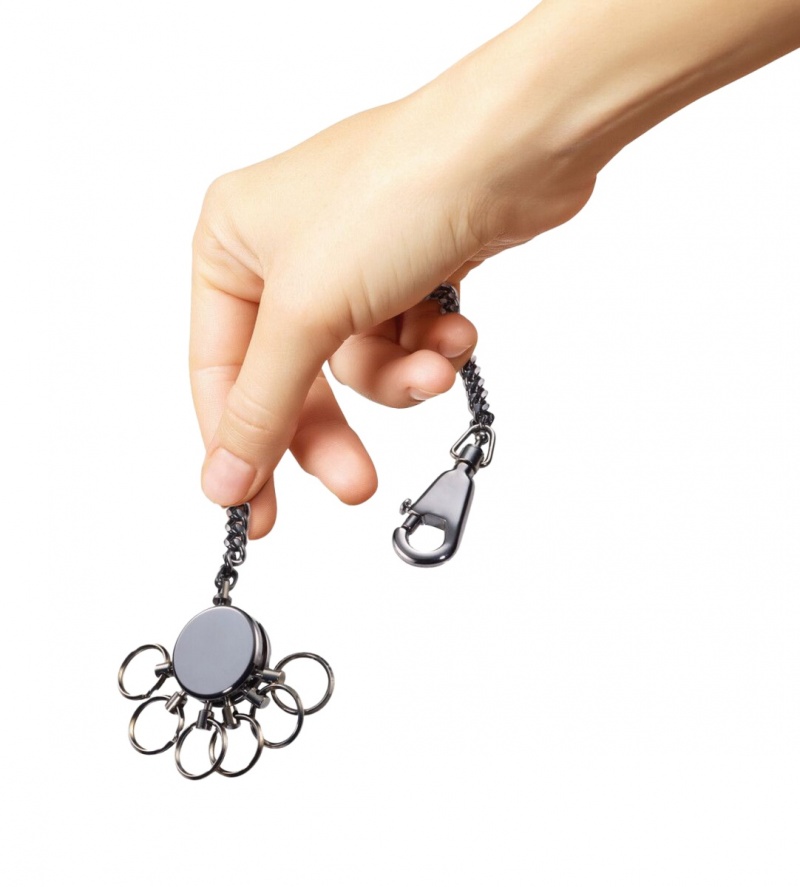 łańcuszek z karabińczykiem i 6 wymiennymi kółkami (ø 13 mm) – błyskawiczna wymiana kluczy i pełna organizacja