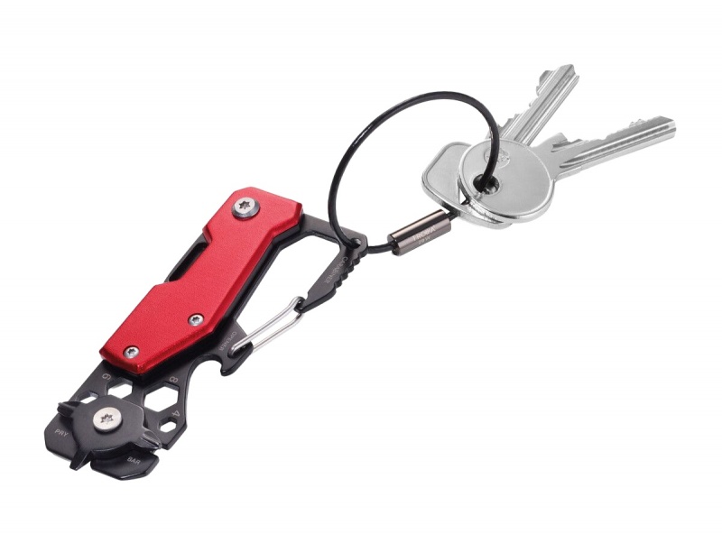 solidny kabel montażowy z drutu umożliwia przypięcie do pęku kluczy, plecaka czy szlufki spodni