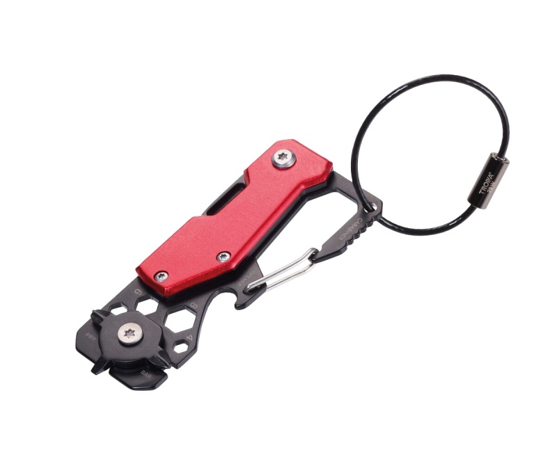 10 funkcji w kompaktowej formie: nóż składany, karabińczyk z pętlą na klucze, otwieracz do butelek, 3 śrubokręty (2 krzyżowe, 1 płaski), klucz imbusowy (4 rozmiary), mały łom/przecinak, linijka (5 cm), klucz do szprych
