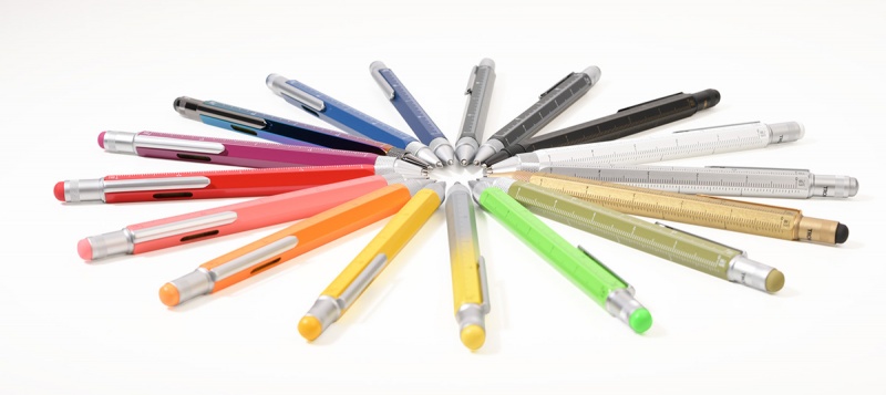 Ten innowacyjny długopis mieści wszystko, czego w danym momencie potrzebujesz: linijka 10 cm i 4 cale, skalę 1:20 i 1:50, poziomicę, śrubokręt płaski i krzyżakowy oraz rysik do ekranów dotykowych.
