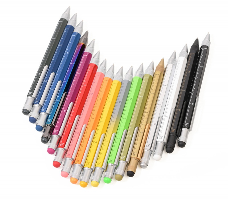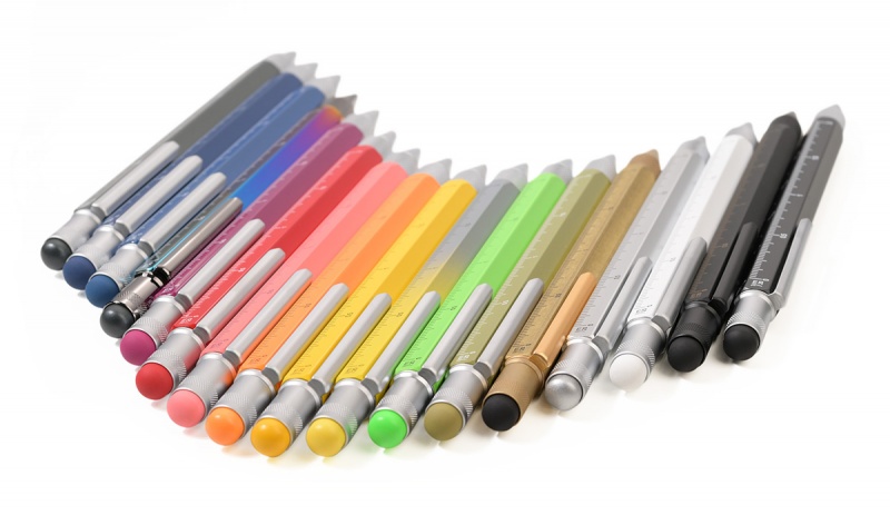Ten innowacyjny długopis mieści wszystko, czego w danym momencie potrzebujesz: linijka 10 cm i 4 cale, skalę 1:20 i 1:50, poziomicę, śrubokręt płaski i krzyżakowy oraz rysik do ekranów dotykowych.