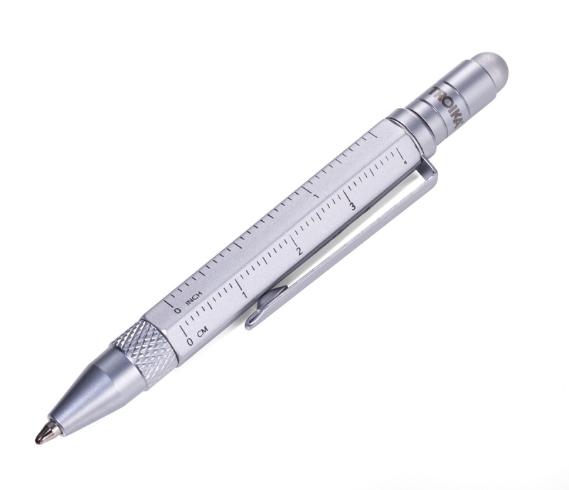 wielofunkcyjny: linijka w centymetrach i calach, śrubokręt płaski i krzyżakowy, rysik do ekranów dotykowych, wkład w kolorze czarnym + 2 zapasowe wkłady