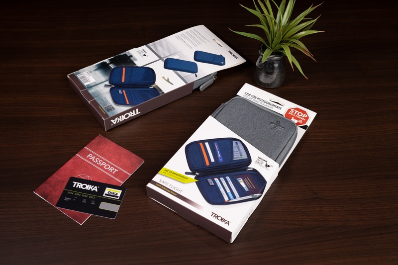 • Etui na dokumenty TROIKA Safe Flight, na suwak, szare