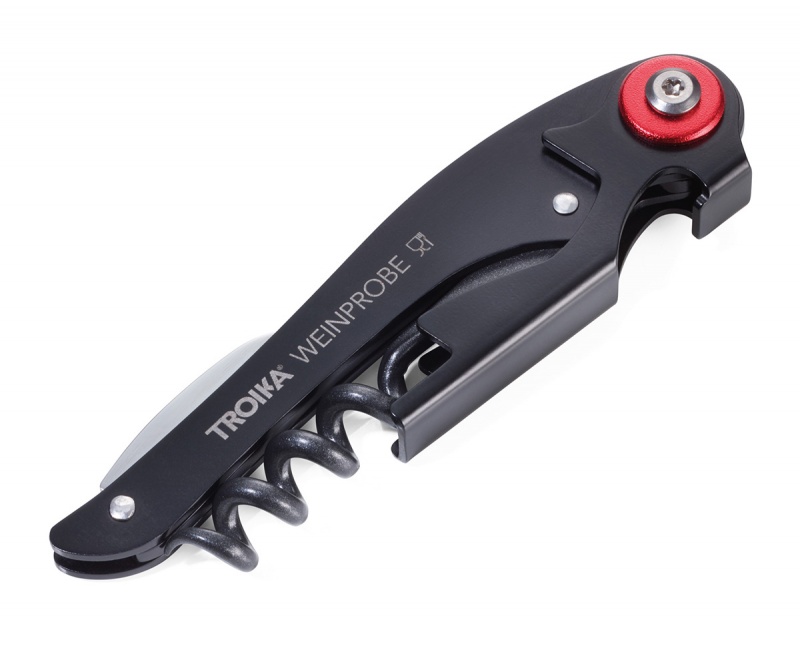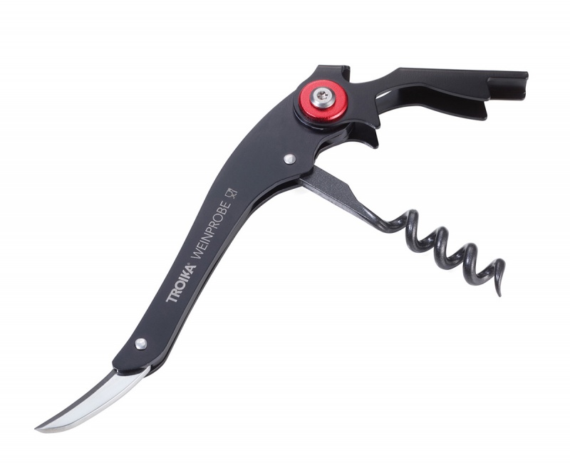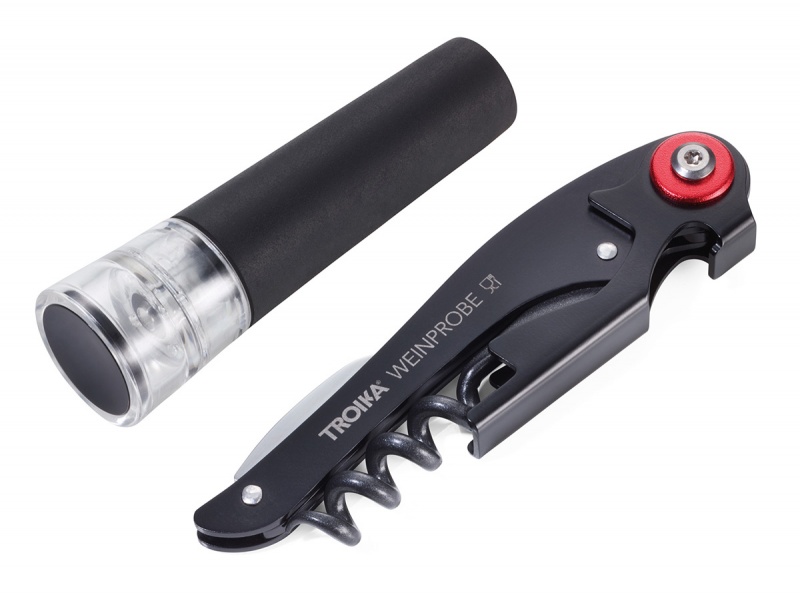 • Zestaw do wina TROIKA Weinprobe, korkociąg + nożyk + zatyczka, czarny