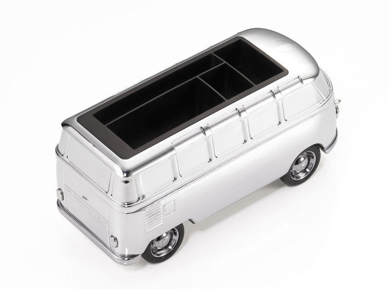 oficjalnie licencjonowany model VW camper w wersji biurkowej został wykonany z odlewanego metalu o chromowanym, błyszczącym wykończeniu, co nadaje mu elegancki i efektowny charakter