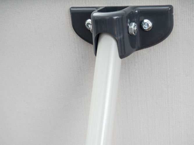 - Możliwość zawieszenia bloku poprzez płynną regulację rozstawu haków (ukrytych pod przednim ruchomym panelem)